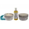 Coffret Cadeau sensuelle PURESPA By Purenail : -une Bougie de massage végétale Fleur de monoï, sans paraffine,80gr - 3 Huiles de massage Fleur de Monoï, Fleur de Tiaré et Coconut